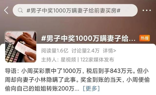 【普法·微热点】男子中奖1000万偷偷给前妻买房,有啥后果?