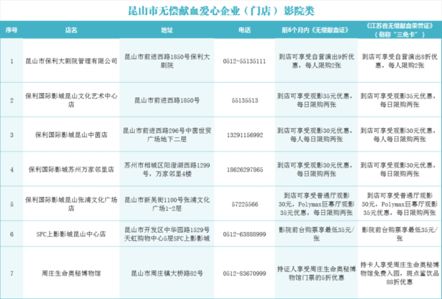 备注:昆山市无偿献血爱心企业(门店)正在不断扩充中,更多优惠福利敬请期待。