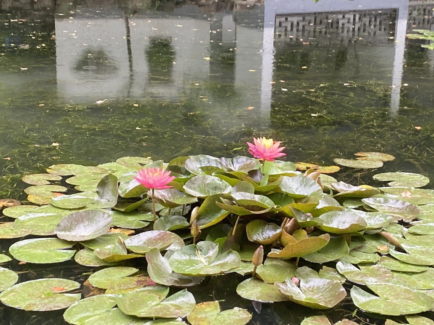 昆山亭林公园历史悠久,名胜古迹众多。素有真山似假山之美称。我曾经去过几次亭林公园,最后一次距今也已过去好几年了。听说现在的亭林公园改变了很多,越来越好看了,我是一个路痴,一直和他念叨着要去看看,今天休息缠着他去,阴雨绵绵,细雨洒在水面上,河里的莲花开的不多,但也因为不多才一枝独秀特别艳丽多姿。我穿着高跟鞋走路有点累,所以早早的结束游园,预约下回过来爬山看文笔峰。