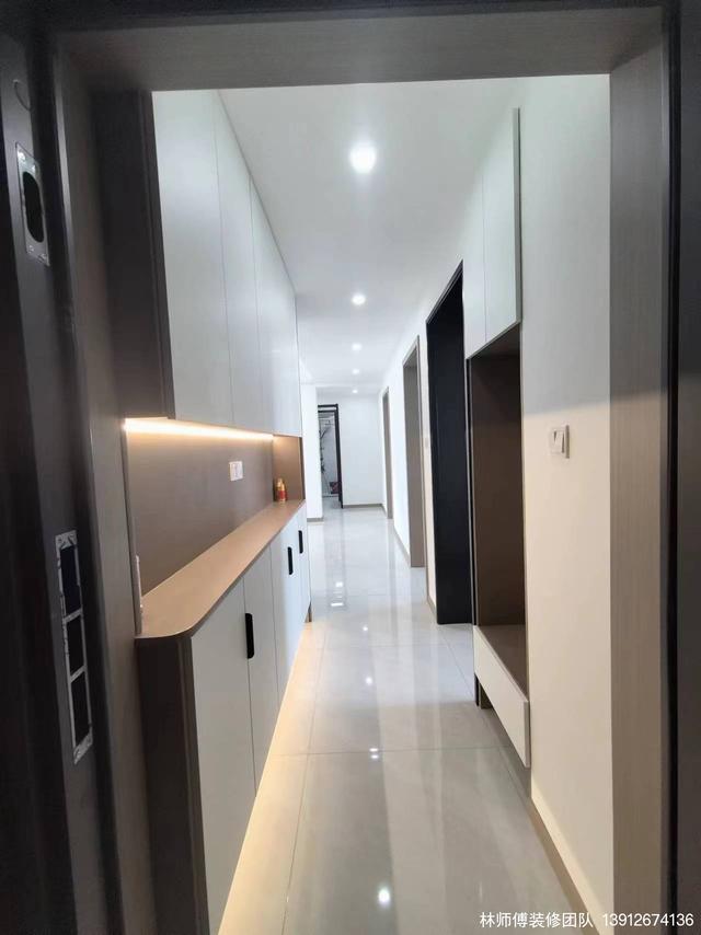 玄关两边都做了柜子,收纳能力杠杠的。左侧是整墙橱柜,上下做封闭式柜子,中间留空,可以放置摆件装饰,也可以放包包、钥匙等物件,非常方便。而且还安装了灯带,让人一进门就能感受到家的温馨。右边做了内嵌的挂衣区,也超实用哦。