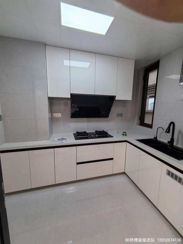 进门的左手边就是厨房,同样是白色为主,显得非常干净清爽。再搭配黑色点缀,这强烈的对比给人一种高大上的感觉。