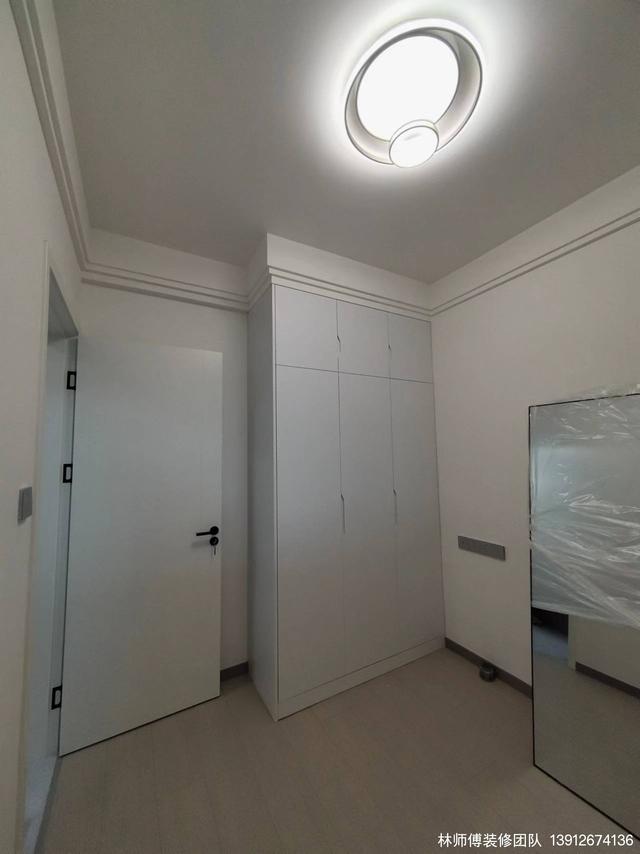 一进门就被这干净明亮的屋子吸引了。白色为主的装修,让空间显得更加宽敞。进门处,一排整齐的橱柜,大大增加了家里的收纳空间。靠近门口的地方,是一个换鞋区,底部镂空,换好的鞋子直接收拾在这里,保持门口处的整洁。