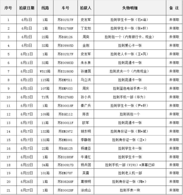【昆山公交正能量】6月职工中涌现好人好事133起,归还失物104件