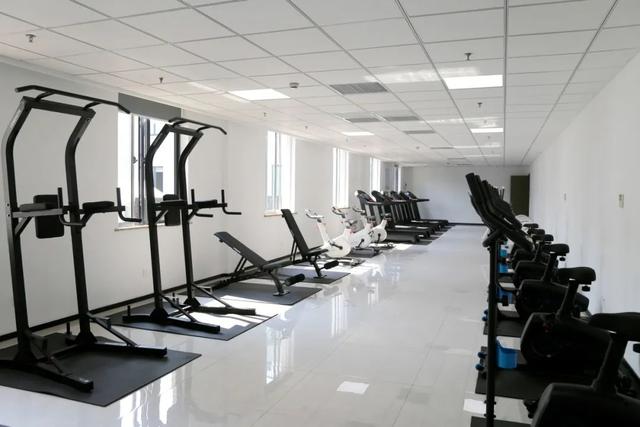 配有健身自行车、跑步机、椭圆机等健身器材,品种齐全,分区清晰。