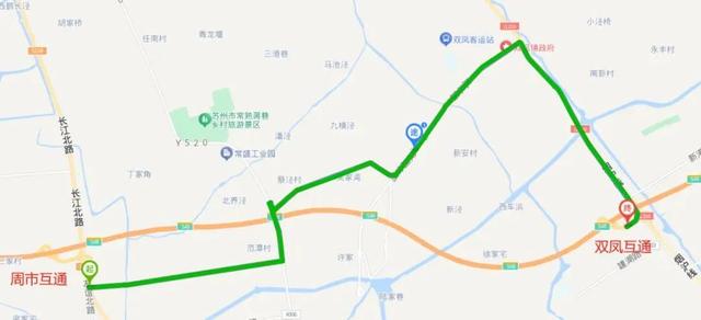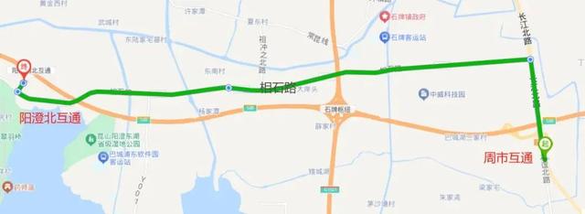 长江北路-相石路-阳澄北互通(长度14.6km,通过15个红绿灯,用时约20min)
