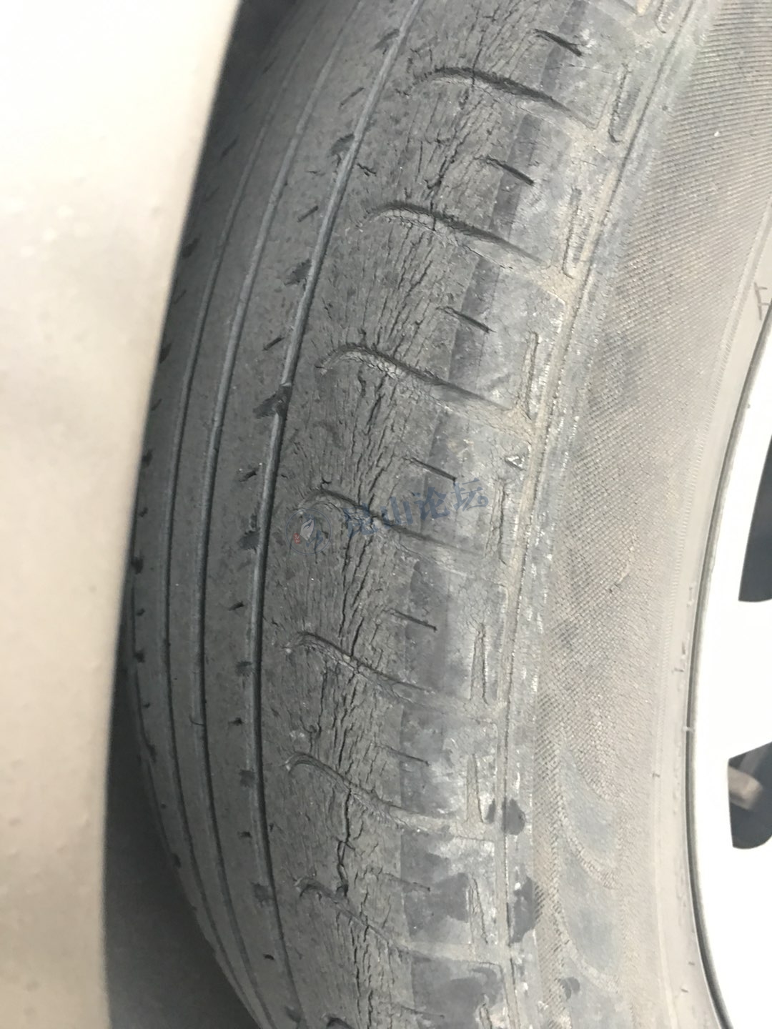 今天几个同事在我车前闲聊天,有个同事告诉我,是时候要换轮胎了