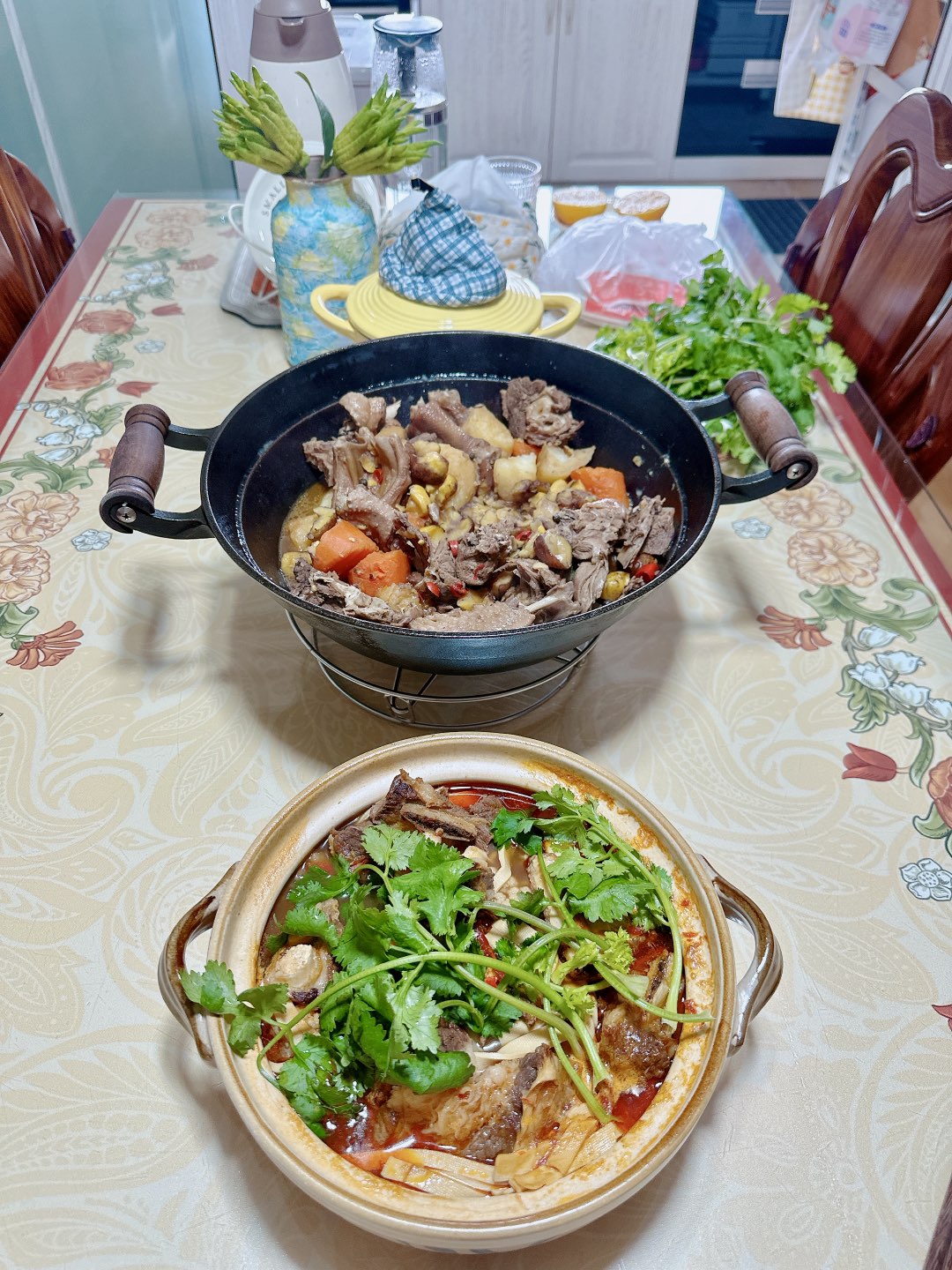 今天买了半只鹅,铁锅炖大鹅,放了板栗、胡萝卜、土豆,煮好了直接一锅上桌。