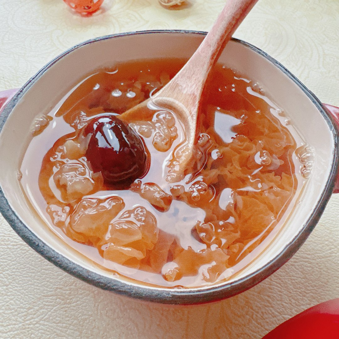 昨晚预约了银耳桃胶红枣羹,结果桃胶炖化了影子都没有了。