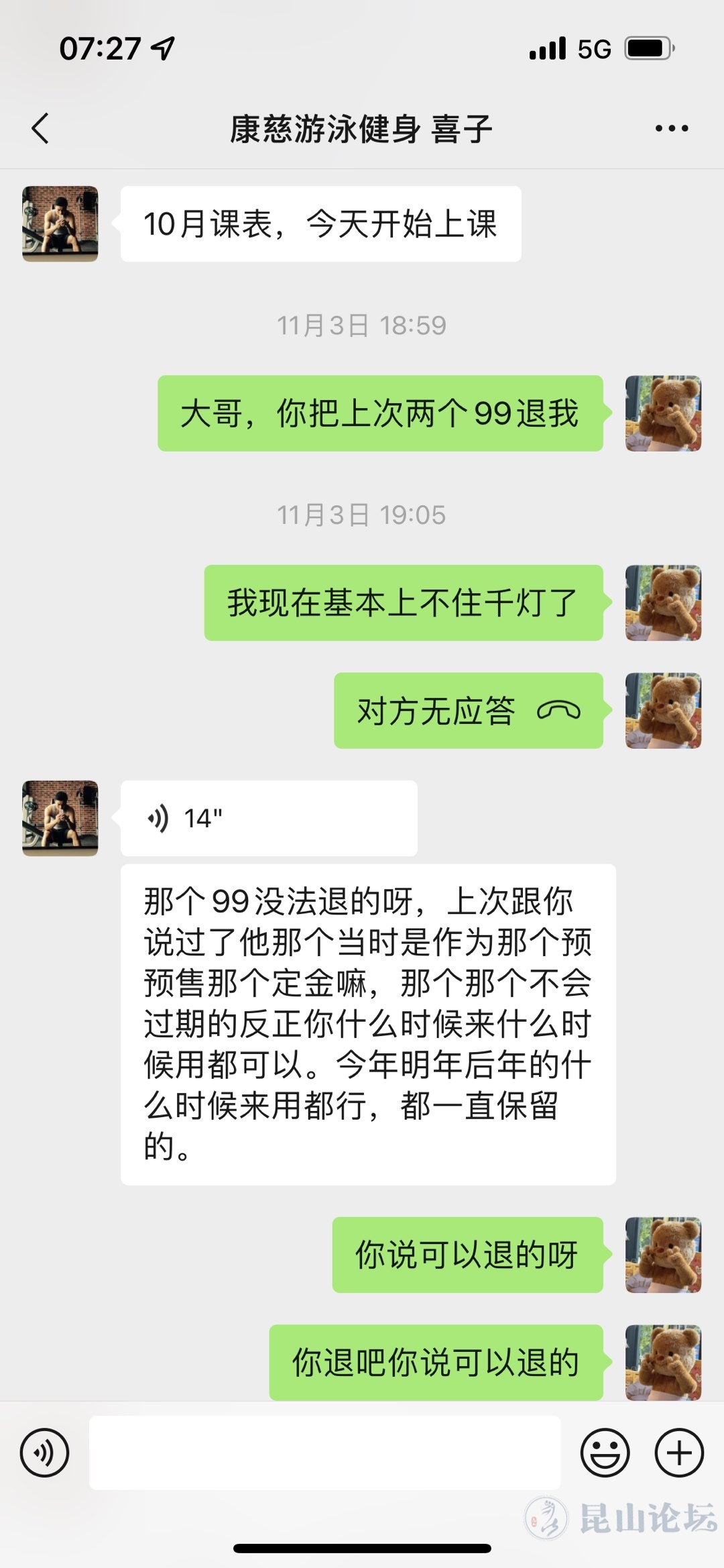 2024年5.10康慈健身销售给我发了他们店里老店装修开业的活动,99抵扣1000元,我也问了可以退费的,如果不退费就按照99一个月去健身,中间问了两次都说可以退,最近(图45)让他退费了,他不说不能退,我中间没有如果一次康慈健身,让他们拿出收据,字据或者合同也没有,我想搞清楚这笔钱进了谁的口袋,目前已经报警警察认为销售的口述有大问题,说了话而不承认!也打了12345,千灯文体也出面协商,康慈健身还是不肯退,意思钱进了口袋不可能退的,请有关部门给我一个合法的权益!!!