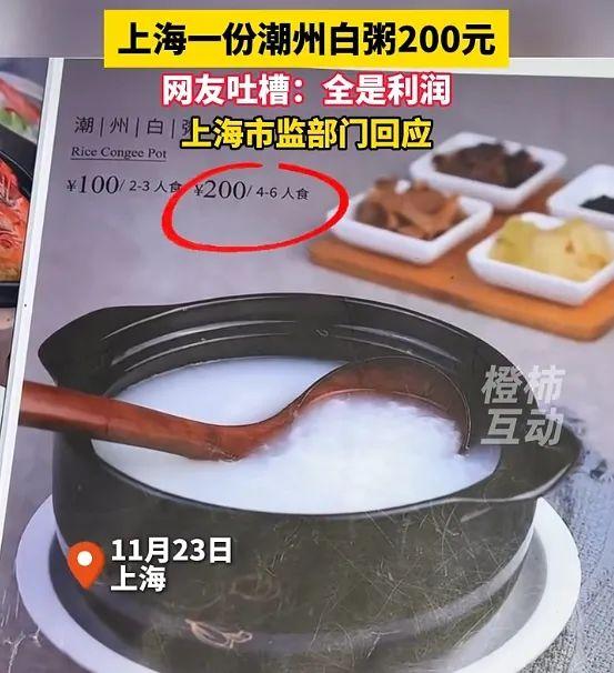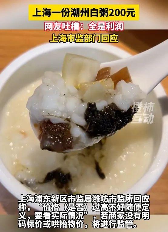 对于网友反映白粥价格太贵的问题,上海浦东新区市监局潍坊市监所工作人员表示,网传信息已记录下来,将与相关负责人反映核实情况。
