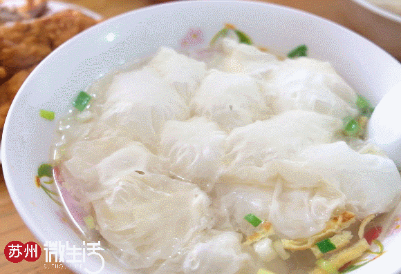 “白”是外皮薄如蝉翼的泡泡馄饨。