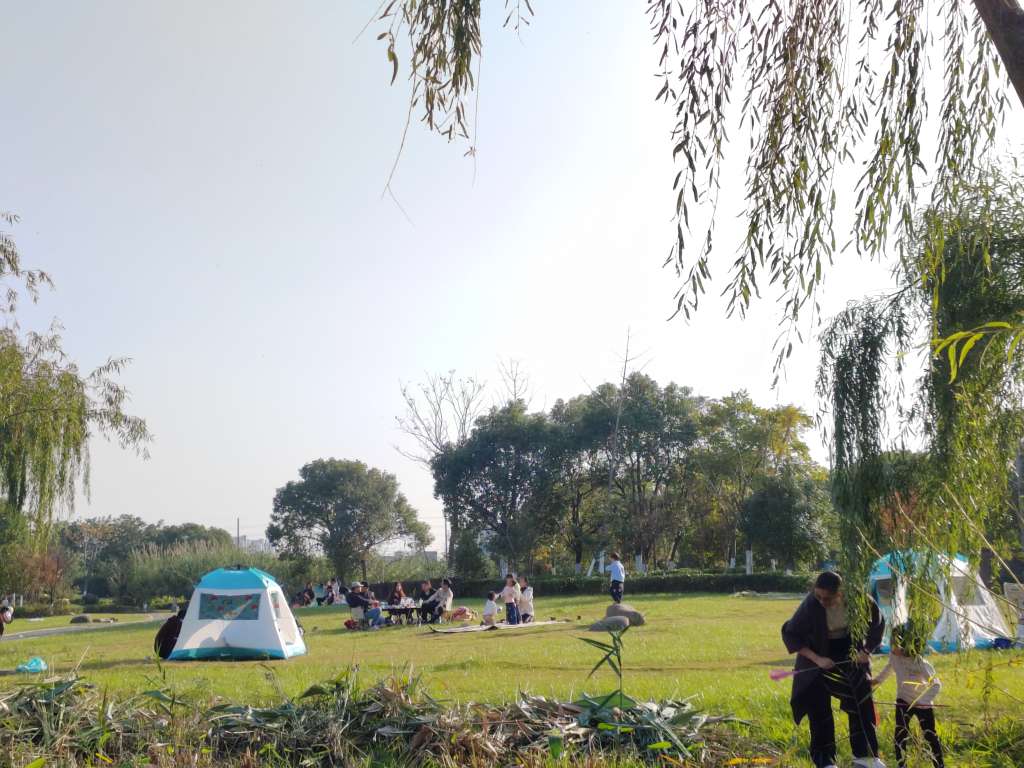 公园里已经很多家人家搭了帐篷了,我就想晒个背,支个桌子,摆个椅子,小歪脖子树底下待一会,好不惬意