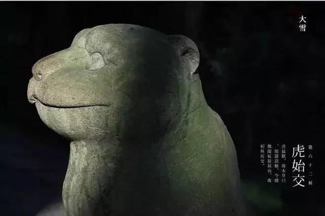 “大雪”时节是阴气最盛时期,正所谓盛极而衰,阳气已有所萌动,老虎开始进行求偶行为。