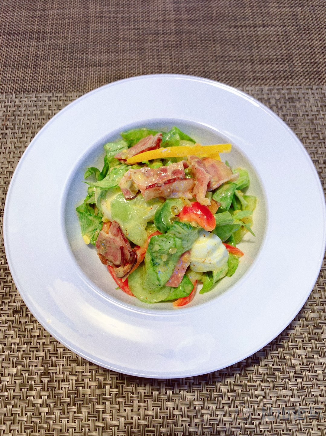 中午猪队友煎了牛排,真的是比我煎的好吃太多了,第一次我煎的牛排吃完咬肌变大两倍,今天培根沙拉我做的,无敌好吃 感觉可以让猪队友付我68元(西餐厅好像是这个价耶[偷笑]),意面我做的也是很好吃呢~