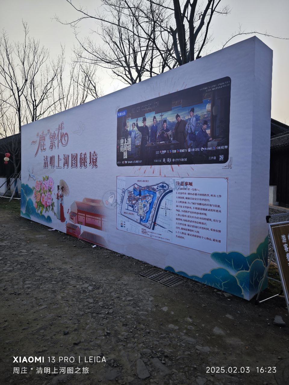 昆山周庄清明上河图基地即周庄数字梦工场外景基地“清明上河图·秘境”,以下是关于它的介绍: 基本概况 - 地理位置:位于江苏苏州昆山周庄。- 占地面积:约146亩,建筑面积约3.6万平方米。- 建筑特色:以1:1的比例精细复刻了北宋画家张择端的《清明上河图》,利用非遗技艺重现宋代建筑,精确到建筑屋脊、房梁的弯曲弧度。 场景设施 - 经典场景还原:完整复原了汴河虹桥、京城街道、开封府等《清明上河图》中的经典场景,构建出21条街道,复原了152处原画建筑体,等比还原了121个宋朝生活场景。- 配套设施完善:基地内设有多个摄影棚,包括9000平方米、5000平方米的高大空间单层影棚以及一个含有100平方米水池的高大空间单层影棚,还配备了12台发电机,另有4000平方米的道具库。 文化体验 - 民俗活动丰富:春节期间会增添浓郁的春节氛围和热闹的市集,有投福纳财、欢乐灯谜等互动体验项目,还有各种传统小吃和文创产品。- 宋朝生活体验:设有“汴河”游船、夕栏瓦舍、听书品茶、主题餐厅等设施,游客可体验宋朝的文化和生活方式。 影视与旅游价值 - 影视拍摄:是热门电视剧《清明上河图密码》的拍摄地,其高度还原的宋代场景为影视创作提供了优质的实景资源。- 旅游观光:作为国内最大最真实的宋朝实景基地,免费向公众开放,游客可以漫步其中,感受“一步一景,一梦千年”的穿越体验。