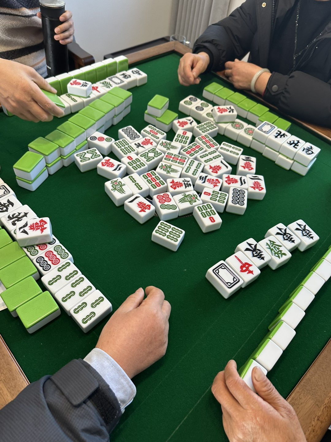 她想要个麻将桌,可以当餐桌又可以打麻将的那种,必须安排,这次过年刚好派上用场了!我妈很开心!晚上他们都回去了,都有饭局,我们晚上烫了一次火锅,朵朵妹子顺哥哥我们做个魔芋爽拌黄瓜,味道还不错哦!初二开始就开启正式拜年吃饭了,堂哥家,大姨,小姨,五姨,三姨家都没来得及吃,因为我们怕堵车,初四凌晨开回来的满车回去,满车回来!都是妈妈的爱!