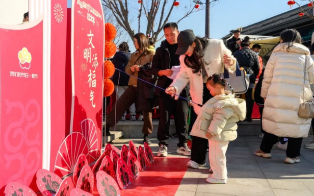 1月18日,昆山市精神文明建设办公室、昆山市新时代文明实践中心举办了“我们的节日·春节——我在新时代文明实践中心过大年”活动。活动现场设置了翰墨贺春、新春编发、编结纳福、巧捏面人等服务市集,组织了“趣味赶年兽”“文明添福气”等互动游戏,并呈现了“赏年画 过大年”主题展览以及舞狮、评弹等“年味视听大餐”。拓一个福字、剪一对窗花、领一副对联、吃一串美味的糖葫芦、梳一个漂亮的新妆……现场的小朋友和家长们在歌舞翰墨中体验传统文化,共享新春欢乐,展望美好未来。