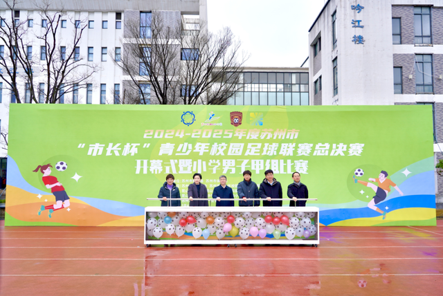 开幕式现场,昆山市玉峰实验学校、昆山市娄江实验中学分别展示了大课间活动及足球操。当天,2024-2025年度苏州市“市长杯”青少年校园足球联赛小学男子甲组总决赛同步开赛,共吸引了来自全市24支优秀队伍参赛,该组别比赛将持续至本月9日。