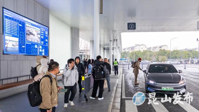 3月16日清晨,昆山南站网约车上客区的三块智慧大屏首次亮起。蓝色屏幕上,旅客臧先生手机预约的白色网约车从进场开始,车牌号、车身颜色、实时位置如同直播般跳动刷新:“从叫车到上车只用了2分钟!”他上车时,屏幕上提示条同步跳转为“已抵达”。