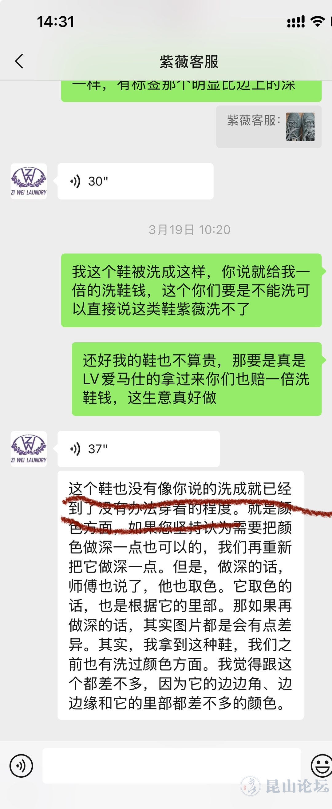 昆山紫薇干洗,真的是垃圾到不能在垃圾,把我鞋颜色洗坏了,找他们客服反馈,一开始说师傅忘记做色了,说帮我重新做色,保证跟原来至少90%以上相似,说客服还说我可以给你去专卖店看原来颜色,保证你满意,等做完拿到手一看(见下图),再次反馈客服,客服说你这个就是这样的,再做也不行了,我说你弄不像就赔钱吧,我也不折腾了,客服回复你这个鞋又不是不能穿,就是颜色上有点那个,这话说的,你不洗出几个洞鞋子都能穿,说最多赔一倍洗鞋钱,不行你就起诉吧,可能他们家被投诉多了,知道顾客最后都是怕麻烦,忍气吞声就这么吃了这个亏,我先投诉市场监管局,市场监管局跟对接客服联系,对方直接拒绝沟通,说不接受调解,看来客服对这种处理起来得心应手啊,我用我的经历希望给大家一点参考,少点踩坑,后来了解到,现在干洗还不如各大网络平台,有问题还有平台兜底,这种线下门店真的是没人能管束他们,真猖狂,先求助广大网友支招,告知一下这家无良企业的法人信息,硬刚到底了,后续持续更新中