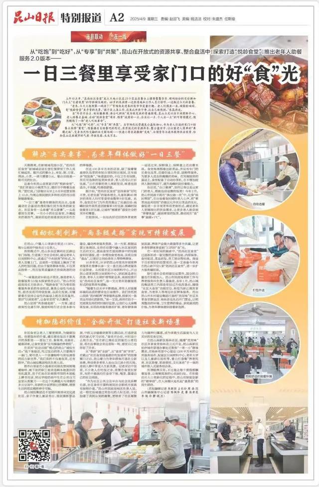“随着生活水平不断提高,老年人对就餐环境和品质的要求也日益提升。我们依托昆山民政‘昆尚颐养’养老服务品牌,探索另一条完全市场化的新路。”徐一文说,政府在给予一定的政策支持的同时做好监管,让他们心无旁骛谋发展,实现政府服务提质扩面、老年群体得到实惠、养老产业做大做强等多方共赢,让更多老年群体享受家门口的好“食”光。