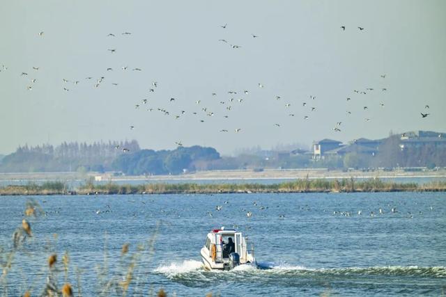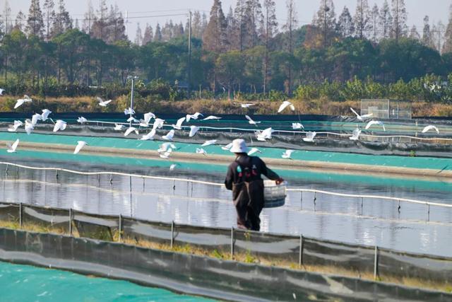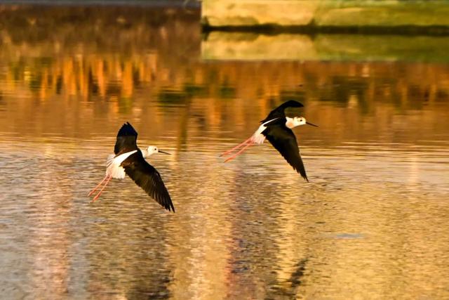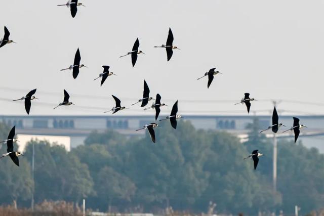 白鹭、长脚鹬(yù)等组队在水中畅游