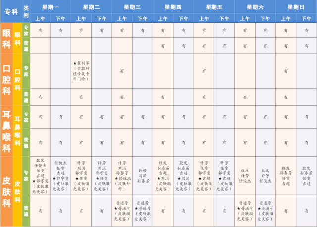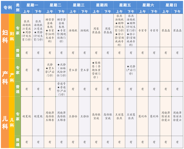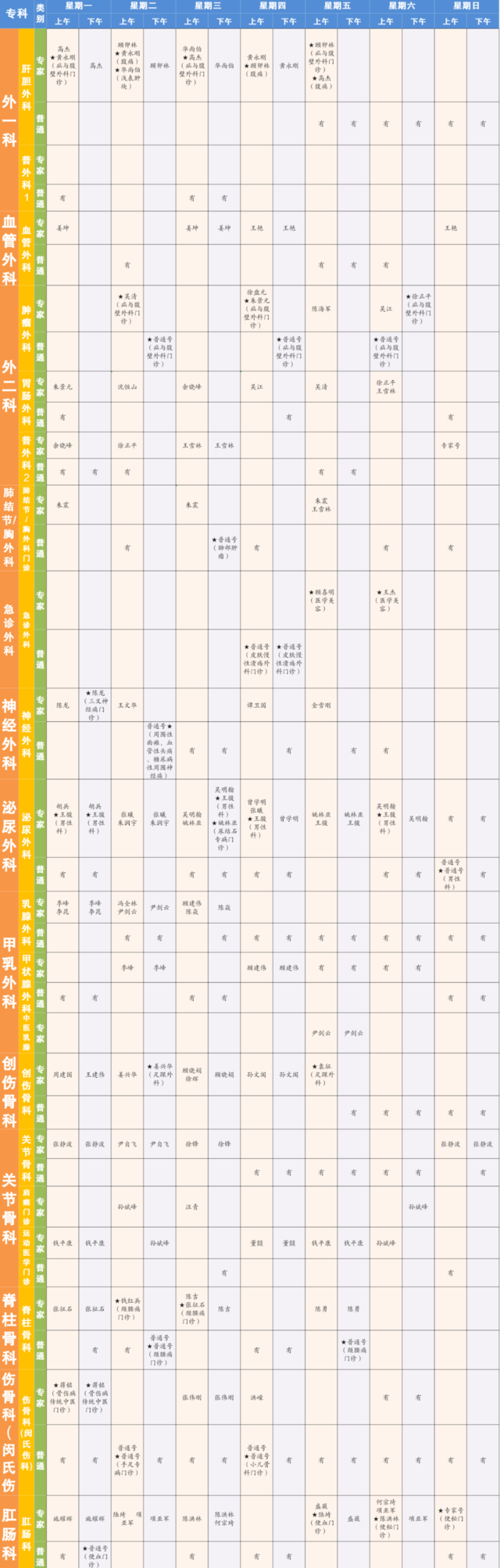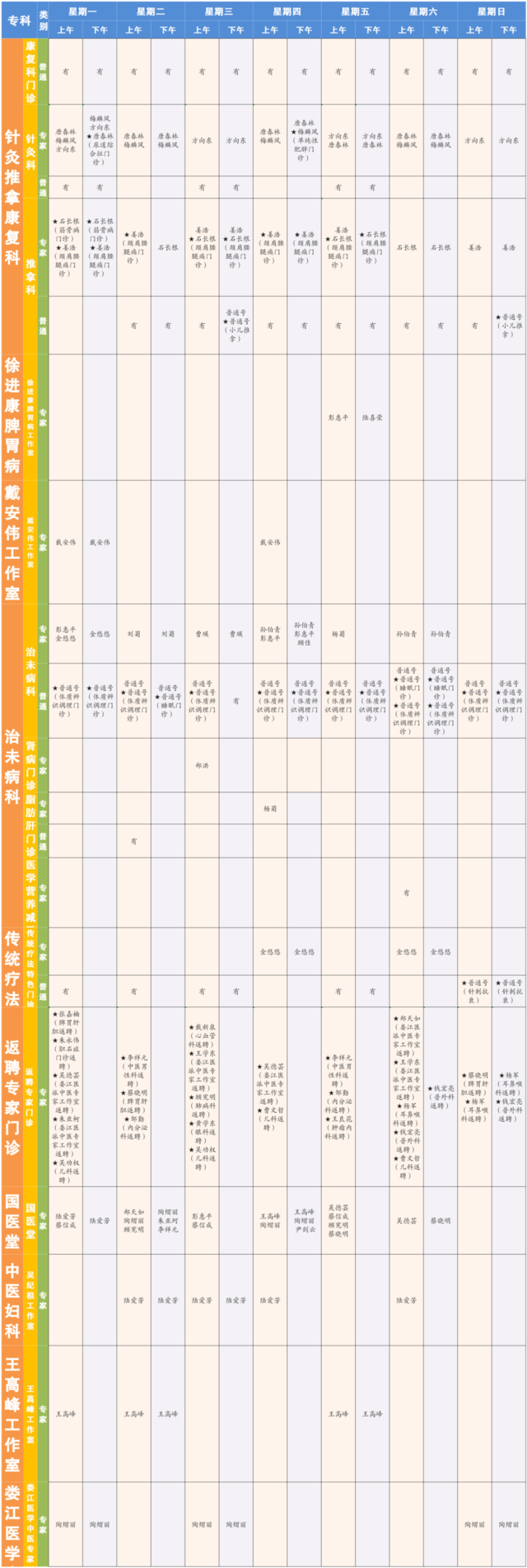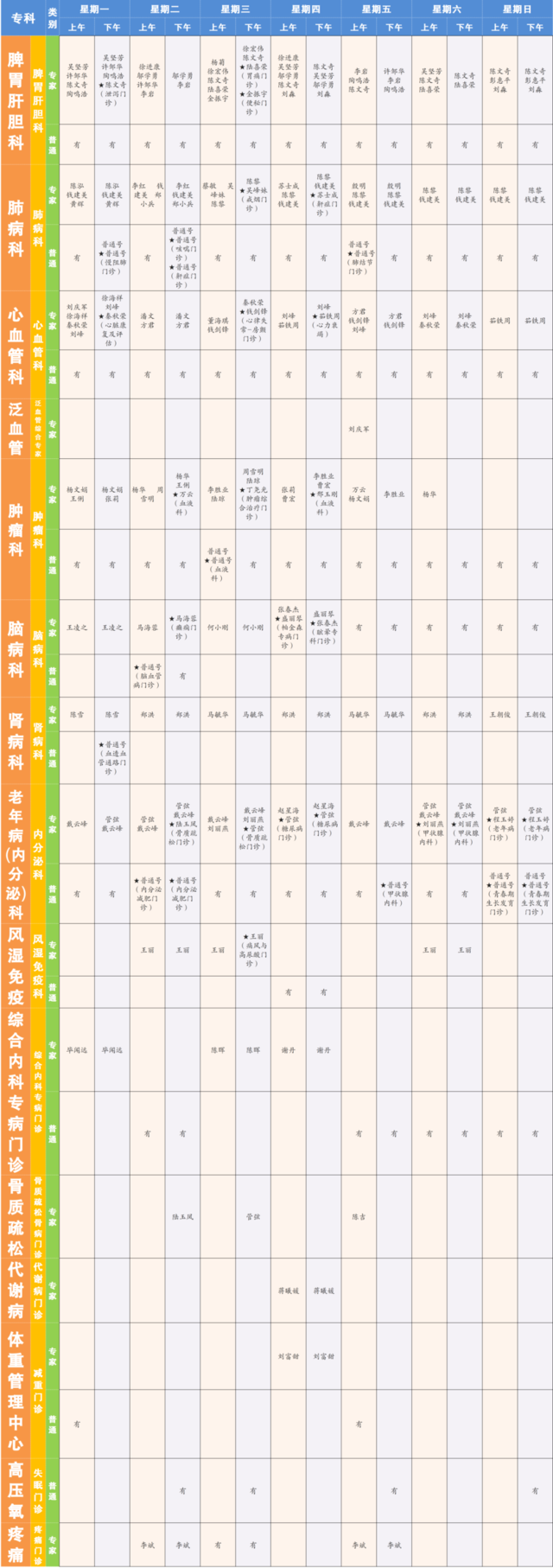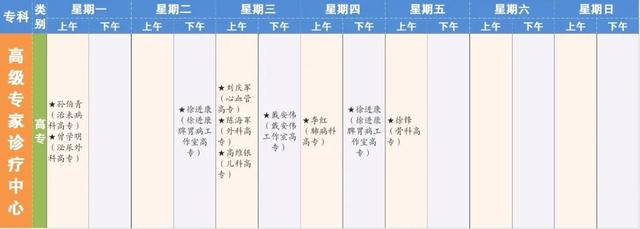 “★”标注为专病门诊;
