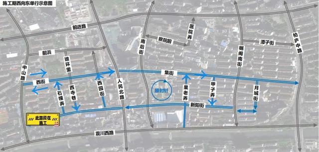 8月14日起,樾阁南街与集街交叉口段全封闭施工,集街(人民北路—柏庐中路)、西街(中山路—人民北路)段将分阶段半幅封闭施工。过往居民可单向通过南街、石幢弄、西园街、新阳街、甲子弄、樾阁南街、月城街等周边道路绕行。请机动车、非机动车和行人按现场交通指示标识通行,注意观察,避开施工区域。