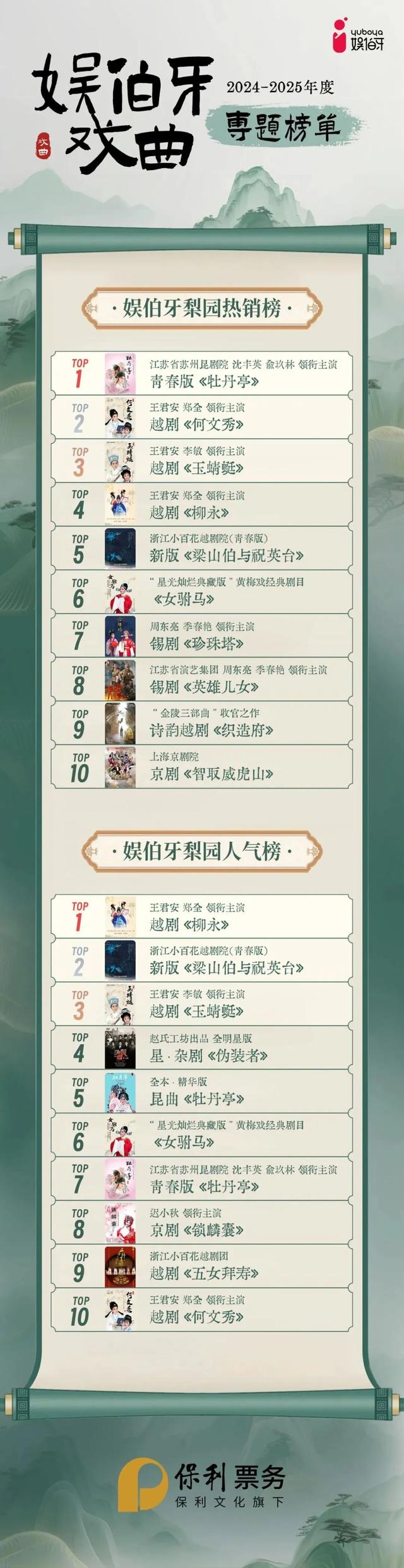 随后,北京保利票务发展有限公司正式发布《2024-2025年度保利票务娱伯牙戏曲市场洞察》,及“2024-2025年度娱伯牙戏曲专题榜单”。依托保利票务平台2024年9月至2025年8月戏曲类销售项目中,票房、场次、地域、观众群体等核心数据,系统性解析2024至2025年度戏曲市场的现实表现与发展趋势。