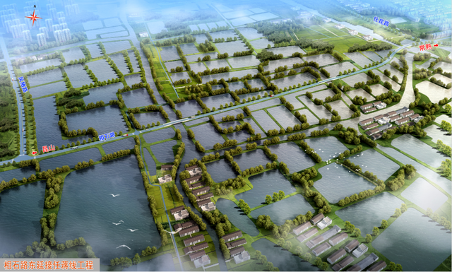相石路东延接常熟任蒋线工程位于昆山市周市镇、巴城镇,西接相石路老路,东至常熟市任昆路,全长约1.28千米,采用四级公路标准,建设内容包括道路工程、桥涵工程、交通工程及沿线附属设施。目前,已完成总体工程量65%,桥梁上部结构施工完成100%,路基施工完成68%。