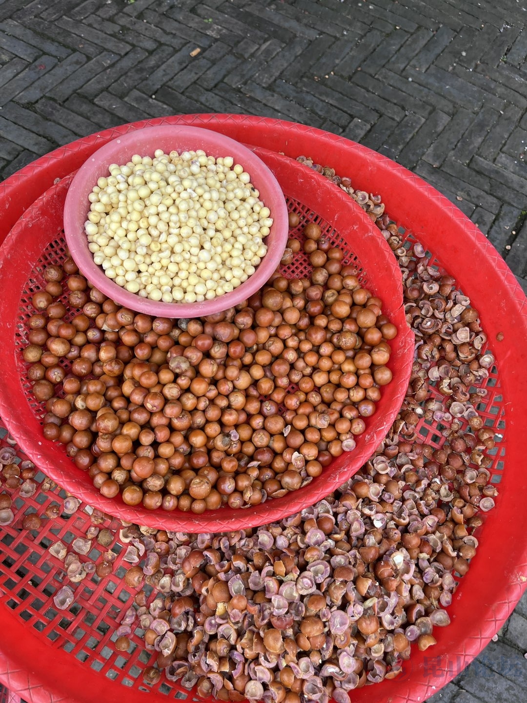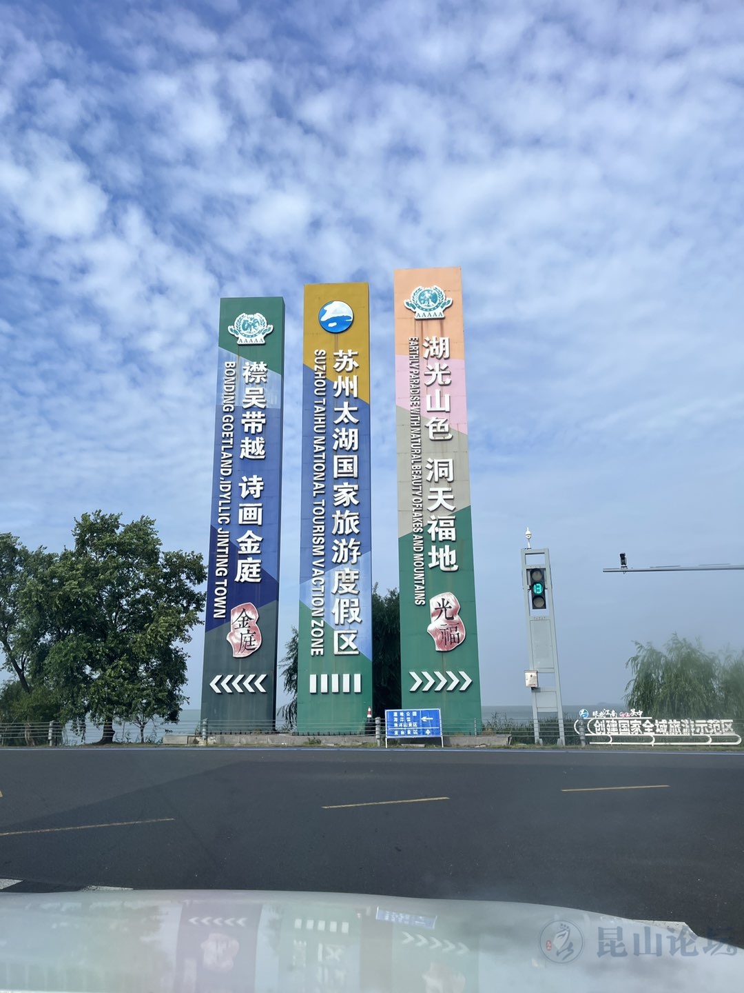 国庆假期我同事要回老家,我只休息两天,好歹也是假期,胖子不想让我宅在家里,1号回乡下看望父母,2号打算去苏州西山一日游,胖子忽悠我说他发现一条近道,不到一个小时可以到苏州西山,带我们去太湖边看看,说走就走,爸爸腿脚不便没有一同去,我们准备好了水果和水还有干粮,带上孩子和老母亲出发!一路上看看风景说说笑笑心情特别好。我看到了苏州地标性建筑大裤衩了。道路两边的栾树随风摇曳着,红彤彤的灯笼飘落在地面,正如史铁生笔下描绘的那样,奇妙、震撼、绚烂一生。第一站我们去林屋洞,号称天下第九洞,经过太湖大桥,一座宏伟的大桥分三段,湖水一望无垠烟波浩渺,湖里有很多岛屿。胖子说大桥上不能停车看风景拍照,会有警察在前面等你。林屋洞要门票,50元一人,老人70岁免票,进入洞内瞬间感觉特别凉爽,地面是湿漉漉的,洞里灯光璀璨夺目,仙雾飘飘,洞洞相连,独特的格斯特地貌鬼斧神工,出洞后可以登山顶俯瞰太湖,不过我们没去,在四周走走,小摊很多,苏州特产太湖白水鱼比较有名,不过天热鱼腥的原因,鱼虾周围好多苍蝇围绕着打转,还有鸡头米、菱角、栗子、莲子、石榴、桔子,枇杷等还有我比较喜欢的杨梅酒。
