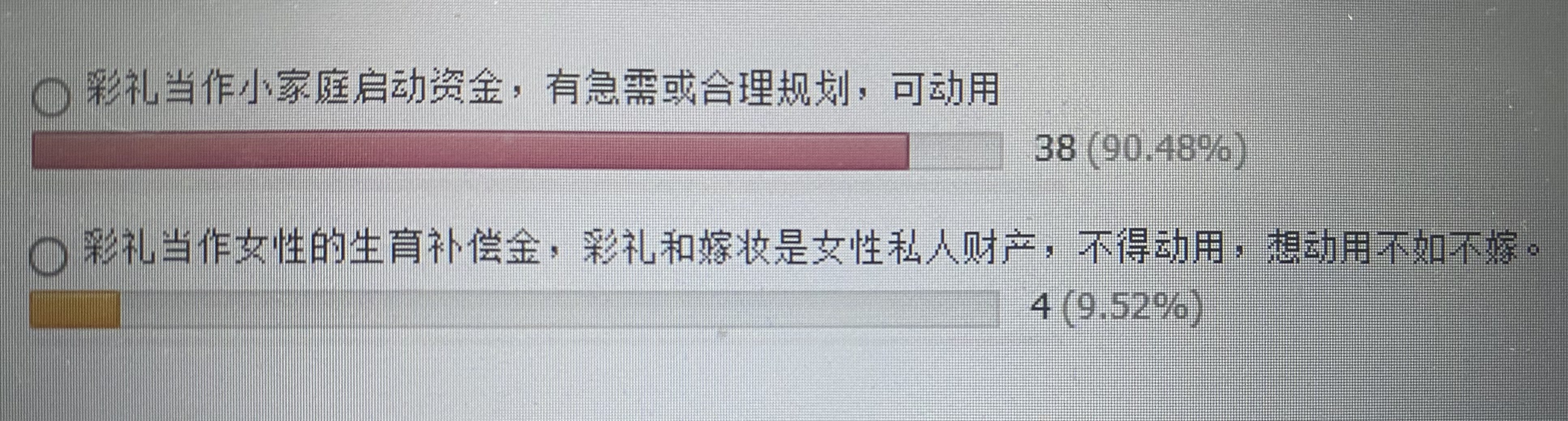 重要的不是要没要彩礼,即便要了,不幸福也得离。关键是你找的这户人家这个人怎么样?你没要是你的态度,你没要他当真就不给了,是他的态度。我结婚也没有提彩礼,人家也给了。ailiyang001:网上一直说江西彩礼高,其实我感觉哪里都是一样的,有高有低的,最高的又不是江西的。我这一辈的人,很多都是O彩礼出嫁的。但是恰恰是我们这批O彩礼出嫁的,后来因为O彩礼的事情受到的白眼最多,男方家里也不会因为你没要彩礼高看你一眼,他们家只会感觉他家的男孩有本事,不要彩 .. (2026-04-28 09:21)