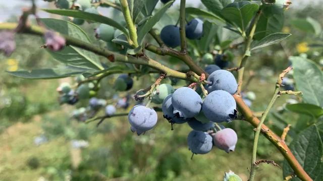 一颗颗蓝莓像一只只迷你小灯笼,挤挤挨挨地缀满枝头,看上去就让人口水直流。虽说蓝莓个头小,但营养价值高,不妨采摘尝一尝~