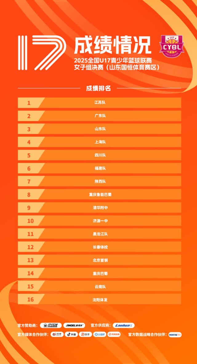5月11日,2025全国U17青少年篮球联赛女子组决赛(山东国恒体育赛区)完美收官。决赛中,江苏队以86比43击败广东队,蝉联该项赛事冠军,昆山运动员孙璇助力其中。广东队获得亚军,山东队获得季军。