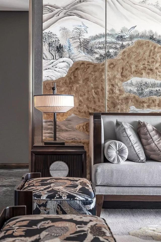 要想新中式与轻奢完美融合,力求在继承和发扬传统文化的基础上,打造出一个简约大气的居住氛围。它不仅体现了中国传统美学精神,而且在设计上删繁就简,很多喜爱中国文化的人们深深着迷。