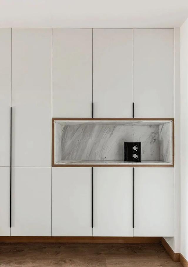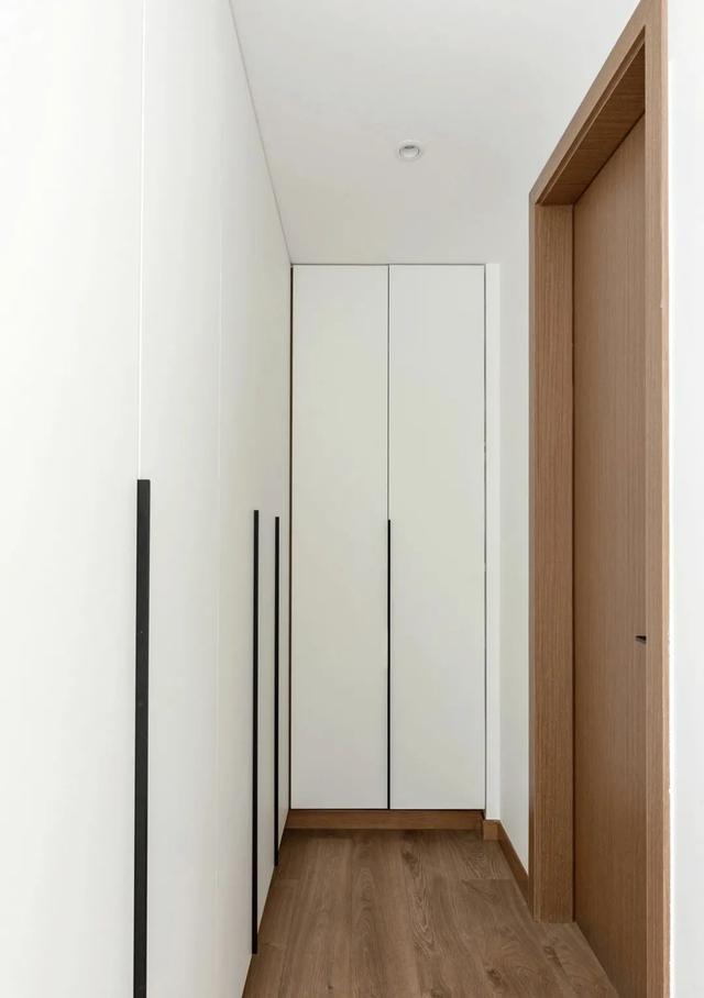 主卧有衣帽间,与玄关柜的打造是同一手法,简洁大气。