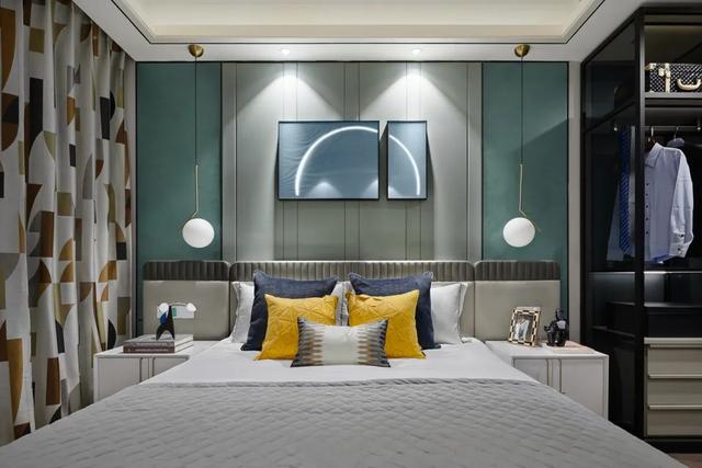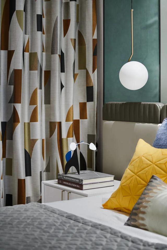 ▲床侧边的斗柜,圆弧的柜体设计,布置精致的花瓶与摆饰,还有一幅简约优雅的装饰画,鲜艳的配色与端庄华丽的质感,带来的是一种成熟优雅的高级感。