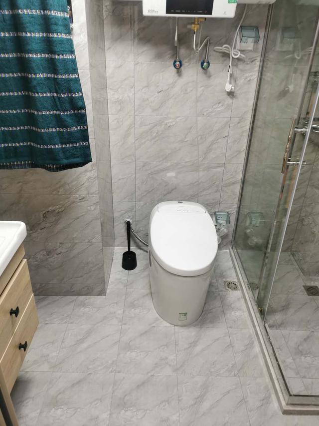 卫生间干湿分离,方便清洁打扫。原木色柜子和浅灰瓷砖,让整个空间看起来非常清爽。