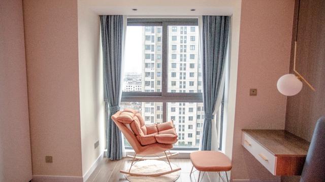 ▲这个次卧以粉色为主,非常少女心。门口边是橱柜,满足平时生活,床边没有买床头柜,而是做了一个简易的书桌,用来学或办公。窗户边的空间布置成了休闲区,放置一个粉色摇椅,每当阳光洒进来,照在身上,什么烦恼都没有了,只想尽情的享受生活!