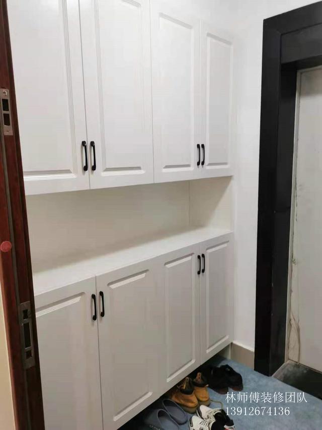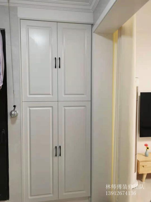 这部分空间是电梯出来门厅的空间,利用起来做一个内嵌柜,增加小户型的储物能力。
