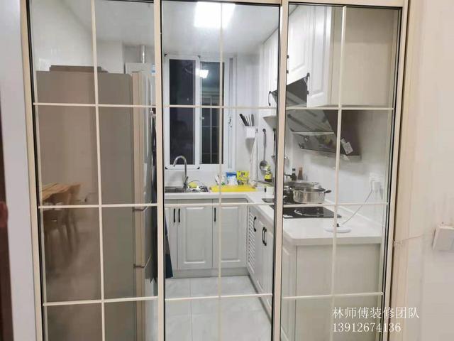 厨房的玻璃移门,不阻挡光线通过,使得厨房内外空间都非常明亮。