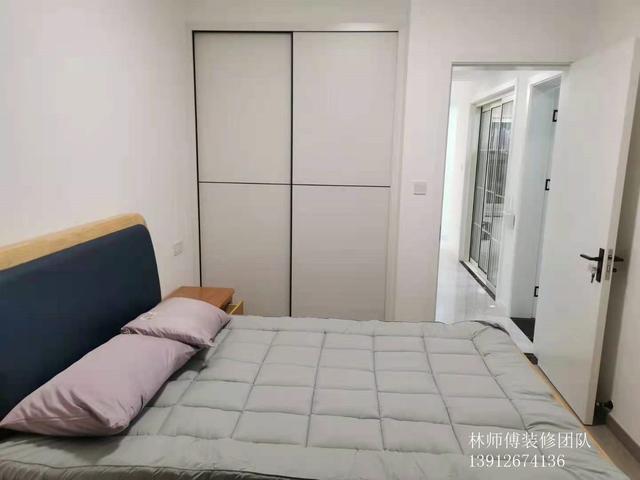 两个卧室干净清爽,灰色、蓝色的床品,舒适简约,营造出一种浪漫舒服的轻松感。