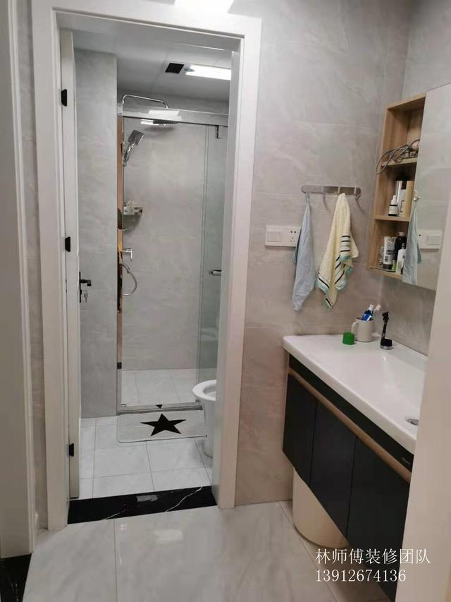 淋浴有移门,防止洗澡水溅出来,方便打扫。并且,淋浴房内还设计了壁龛,可以放下超多洗漱用品,而且还好清洗呢。