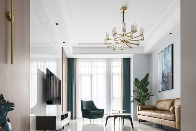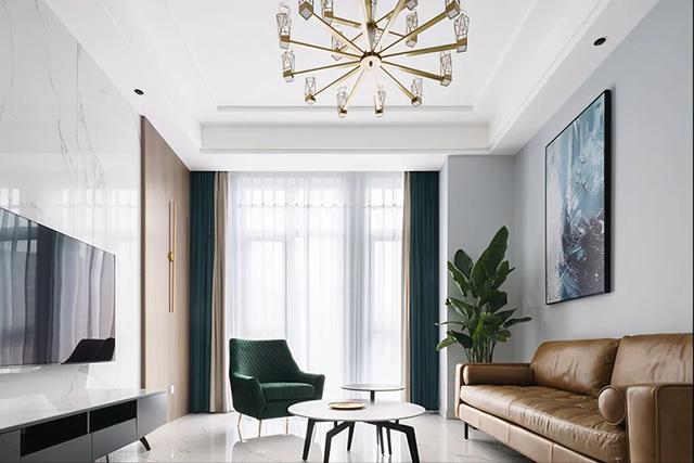 刚刚完成一套,电视背景墙大理石+黄铜做装饰,简约轻奢又好看!