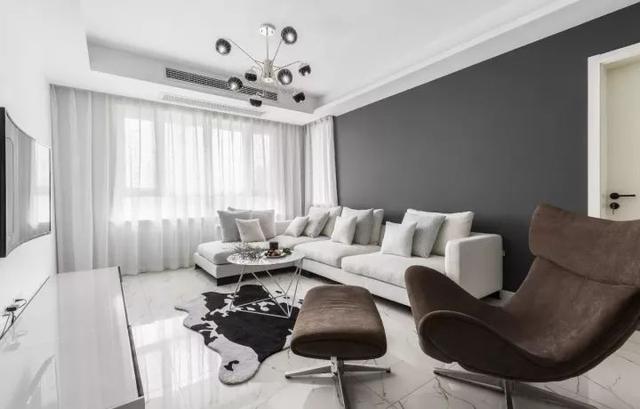 比较和谐一些的就是把地板和窗帘选择相近的颜色,比如白色,纯白的窗帘可以让客厅拥有更良好的采光,如果怕太单调,就选择深色的墙面和点缀。