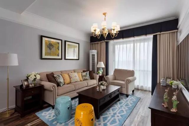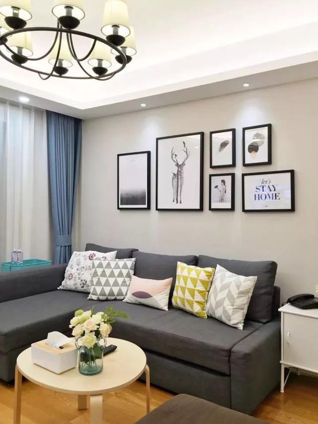 我是比较喜欢蓝色的窗帘搭配灰色的沙发的,哪怕是一个迷你的小客厅,也不会显得太过狭小,给人一种小清新的感觉。