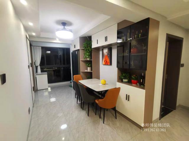 整套房子的户型还是不错的,南北通透,采光也不错。进门玄关柜,做了一整面墙的橱柜,能让门口收纳的干干净净。大门口进来的橱柜是设计了矮柜,可以当成换鞋凳,坐着换鞋更舒服哦。