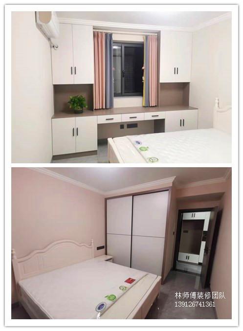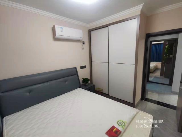 主卧做个改造,隔出了一个洗手间,所以主卧面积变小了,床靠墙放可以节省面积,门口进来是衣柜,满足日常房间收纳需求。