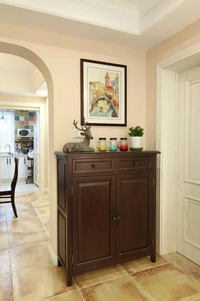 从一进门开始,就可以选择挂画来装点我们的房子了,如果是成品小鞋柜,上方放一幅挂画可以说是标配了,不管什么风格都适合这样做。