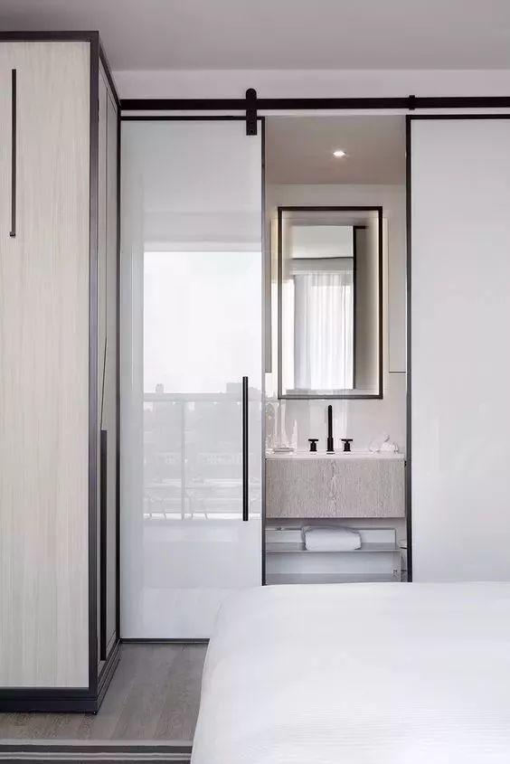 卧室、卫生间的推拉门设计,则要更加注重遮挡视线的功能。采用木质移门、磨砂玻璃等隔断形式,更能照顾到生活的私密性,而且不占位置,美观又大方。现如今,随着装修手段的多样化发展,推拉门的材质、造型、功能和运用范围得以不断扩展,设计上也越来越新颖,越来越有艺术感。